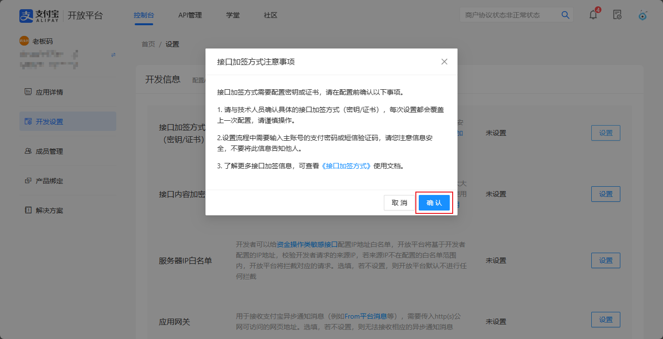 6.3粘贴应用公钥到支付宝开放平台中