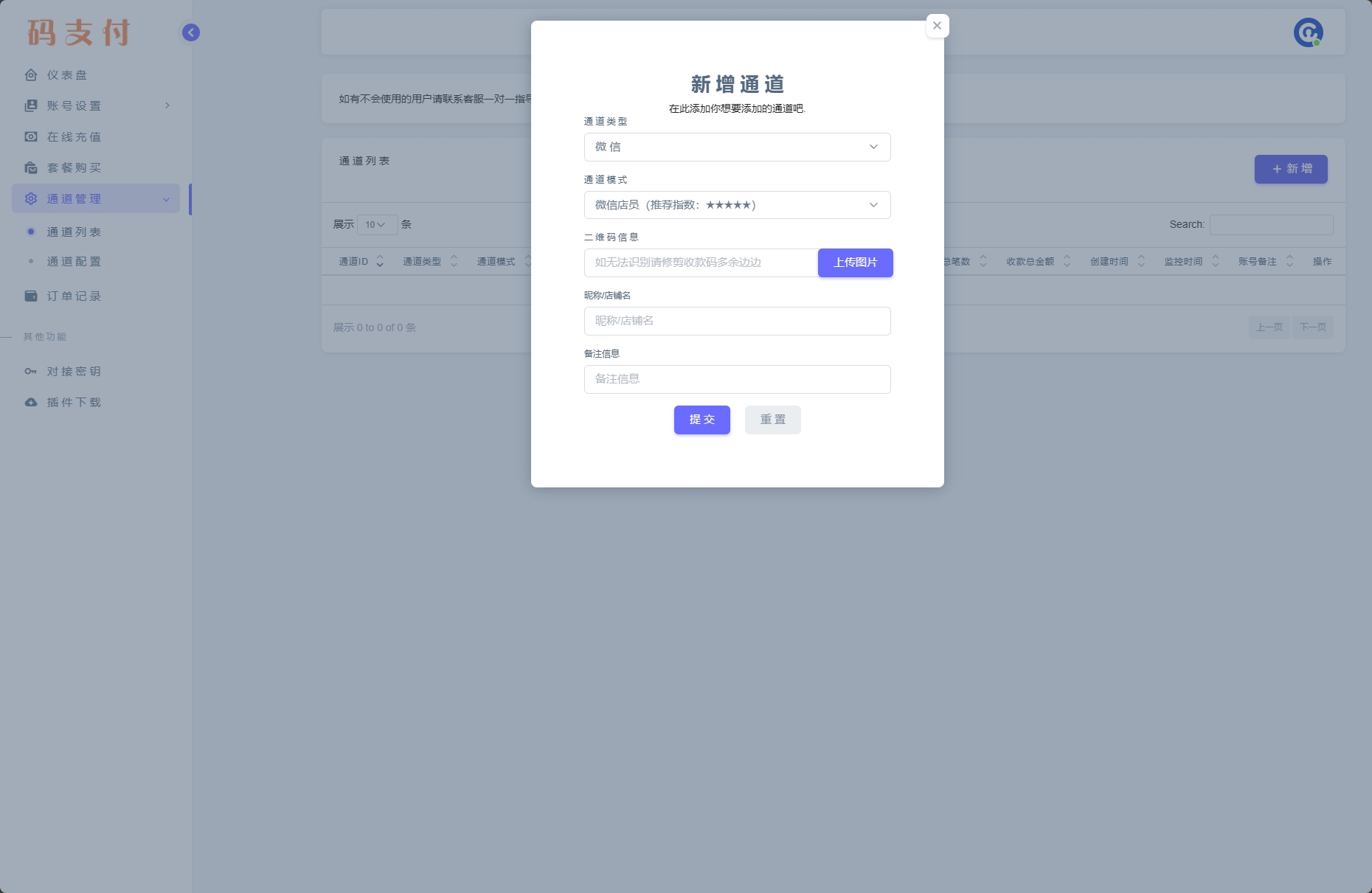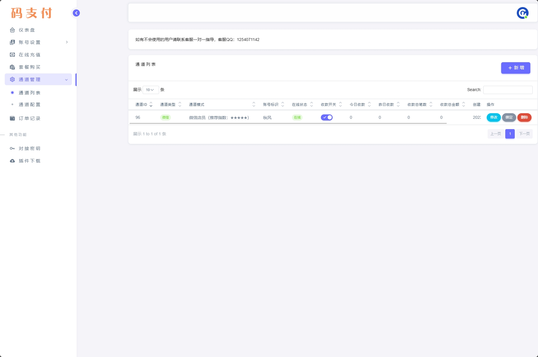 接下来回到码支付用户中心依次打开“通道配置”,“通道列表”,“新增”
