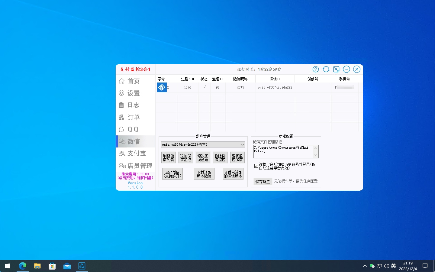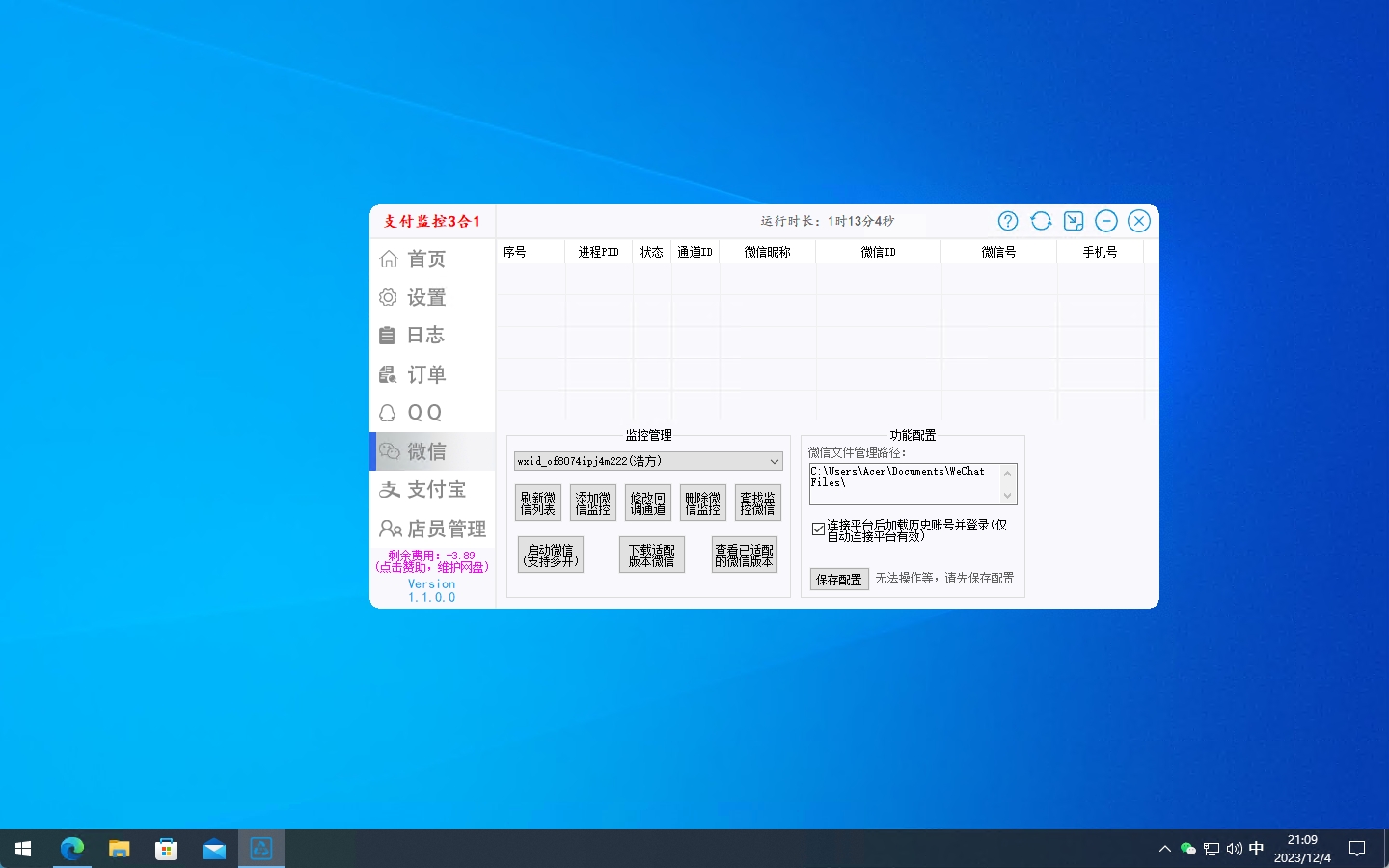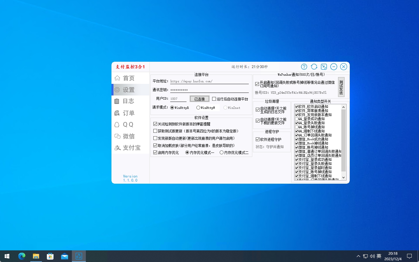 回到支付监控软件界面