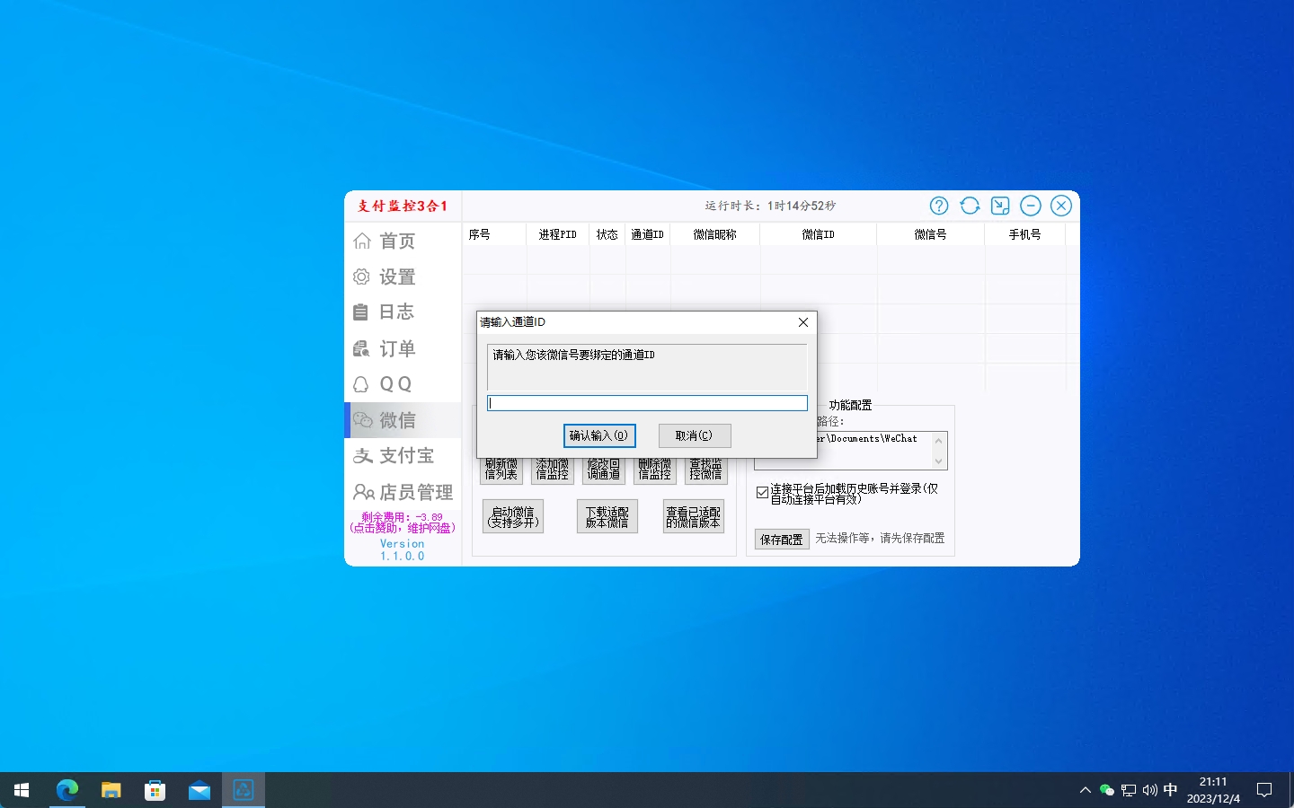 点击“添加微信监控”进行通道监控。